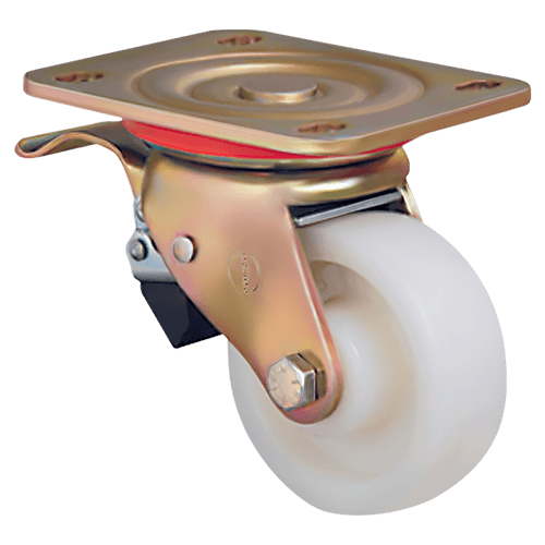 Большегрузное колесо ED01HKZ80F бренда EMES изготовлено из нейлона, устойчиво к воздействию различных агрессивных химических веществ. Подходит для эксплуатации в условиях, требующих соблюдения высоких санитарно-гигиенических требований — например, на предприятиях пищевой промышленности, в лабораториях и медицинских учреждениях. Кронштейн у модели поворотный, изготовлен из оцинкованной стали. Наличие тормозного механизма позволяет при необходимости надежно блокировать колесо, предотвращая его самопроизвольное перемещение.
