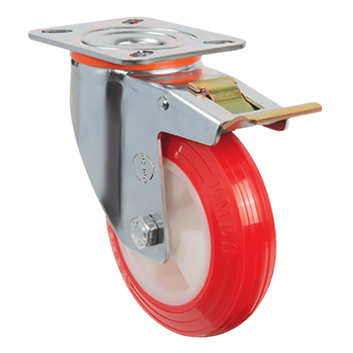 Опора колесная EMES EM01 ZKP 150F устанавливается на складскую технику, оборудование, платформенные и покупательские тележки.