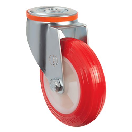 Опора колесная EMES EM04 ZKP 200 устанавливается на платформенные и покупательские тележки, стеллажи, евроконтейнеры, промышленное оборудование.