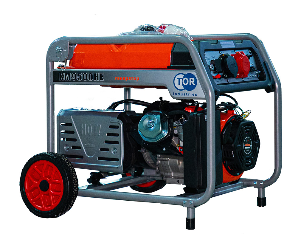 Генератор бензиновый TOR KM9500HE мощностью 7 кВт с возможностью выдачи напряжения 220 В и 380 В. При работе в однофазном режиме (220 В) и трехфазном режиме (380 В) мощность остается почти одинаковой — 7 кВт (соотношение 0,9:1). Генератор оснащен розетками обоих типов: 220 В (32 А) и 380 В (16 А), что позволяет подключать оборудование любого типа без потери мощности. Электростартер обеспечивает легкий запуск, а топливный бак увеличенного объема гарантирует продолжительную работу без дозаправки. Микропроцессорная система управления поддерживает стабильное напряжение с отклонением не более ±3%, обеспечивая безопасную работу чувствительного оборудования. Генератор TOR KM9500HE подойдет для энергоснабжения строительных площадок, частных домов, малого бизнеса и промышленных объектов. Синхронный альтернатор с медной обмоткой обеспечивает высокий ресурс и стабильную работу даже при длительных нагрузках. Где используется?