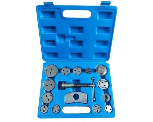 Комплект инструментов имеет неограниченный срок эксплуатации, устойчив к нагрузкам, значительно упрощает работу автомеханика. В пластиковом кейсе 1 правый болт и 14 адаптеров, которые подходят к размерам тормозных поршней большинства легковых машин.
