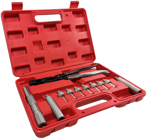 Клещи TA-A1010 предназначаются для удаления и установки клапанных уплотнений двигателя. Обязательно поставляются с набором: приводная ручка, семь оправок для работы с диаметрами 5, 5.5, 6, 6.5, 7, 8 mm и 3/8 дюйма, а также 2 шт для глубоких уплотнений 10.8-14.8 mm.