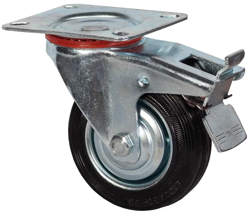Колесо промышленное поворотное с тормозом 100 мм - SCb 42 — это промышленное колесо, подходящее для тележек и платформ, эксплуатируемых в тяжёлых условиях. Обеспечивает устойчивость к маслам, пыли и повышенной нагрузке.Сферы применения: производственные и складские тележки, подъемные платформы, агрегаты и транспортировочные системы в промышленности.Технические характеристики:Диаметр колеса, мм 100Ширина колеса, мм 30Нагрузка на колес/опору, кг 70Высота колесной опоры, мм 130D отверстия оп/пл-ки, мм 9х14Опорная площадка, мм 101х84Межосевой размер отверстий, мм 80х60Модель SCb 42
