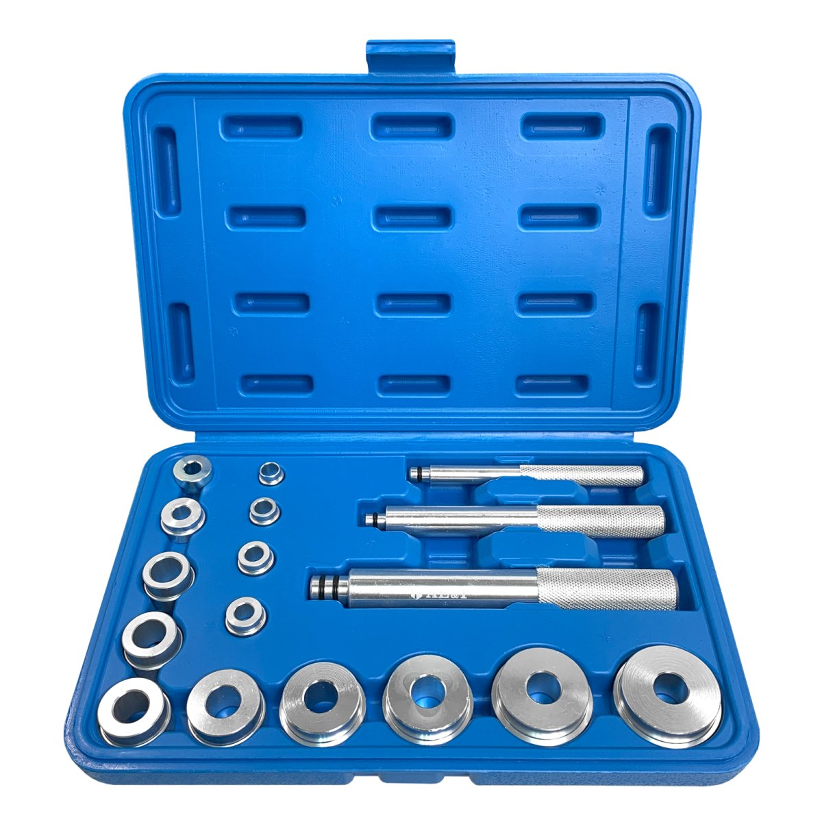 Оправки TA-D1016 разработаны для безопасного обслуживания уплотнений и подшипников, не повреждая их. В комплекте семнадцать предметов: три приводные ручки из рифленого алюминия, фланцы диаметром от 10 до 42 мм.