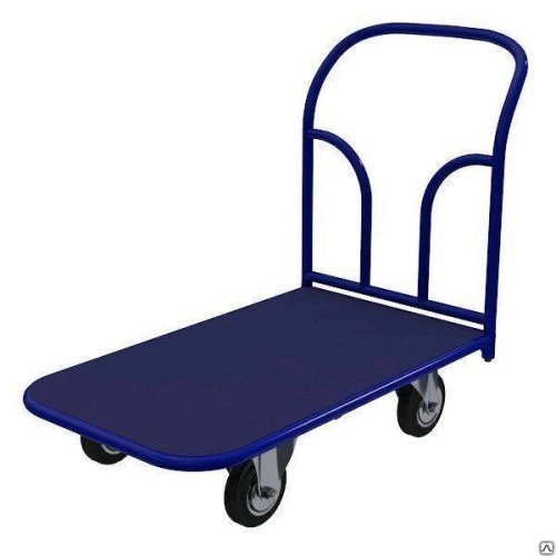 Тележка платформенная. Каркас платформы изготавливается из трубы Ø30 мм, настил металлический лист толщиной 1,0 мм. Ручка изготовлена из трубы Ø 30мм., заполнение труба Ø 25 мм. Размер платформы 800х1800 мм. Площадки для крепления колес универсальные и рассчитаны на установку от 125 до 200 диаметра.