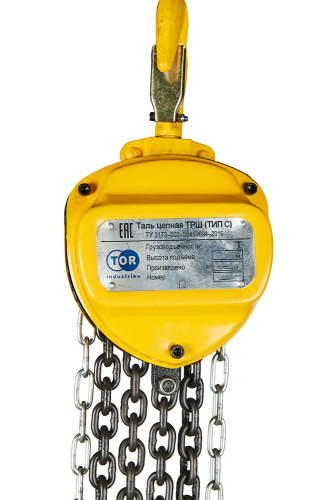 Таль ручная шестеренная TOR ТРШ С это самая популярная модель ручных талей на территории РФ. Надежная конструкция с автоматическим дисковым тормозом обеспечивает плавное и безопасное перемещение грузов, идеальная подгонка деталей отвечает за точное позиционирование перемещаемых объектов. TOR ТРШ С доступна в вариантах Грузоподъемность от 0,5 до 50 т Высота подъема от 3 до 18 м Где используется? Выносливый, неприхотливый механизм активно используется на складах, стройках, производственных площадках. Преимущества тали TOR ТРШ C Усиленная конструкция: - Усиленные верхний и нижний крюки. - Цепь соответствует 8 классу прочности по ГОСТ. - Автоматический тормоз с диском феродо. Надежная фиксация грузов. - Долговечная конструкция тали рассчитана на 4х кратный запас прочности. - Нормативный срок эксплуатации составляет 7 лет. Удобство использования: - Общепромышленное исполнение - для работы в тяжелых условиях! - Точное позиционирование груза благодаря идеальной подгонке деталей на заводе. - Не требуется подключение к электросети. - Температурный режим использования от -20 до +40°C. - Надежный механизм не дает сбоев в работе. - Простое техническое обслуживание в основном заключается в очистке от грязи и смазке.