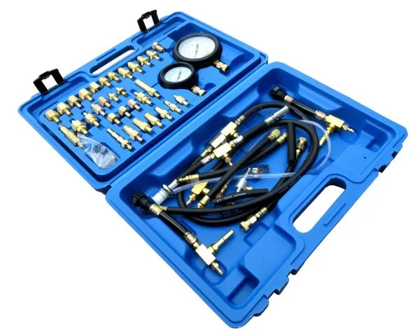 Комплект приспособлений для измерения давления топлива в магистралях большинства существующих марок и моделей автомобилей.