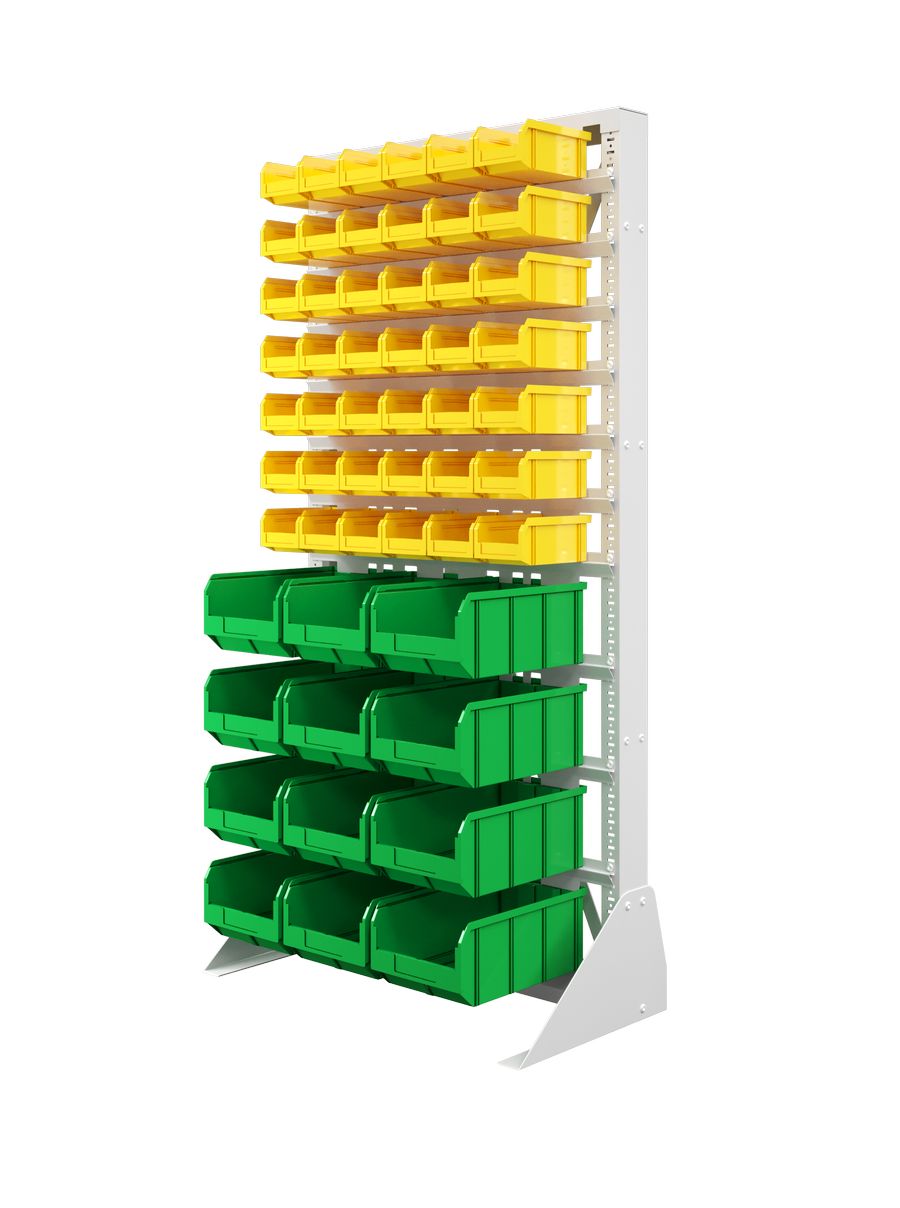 Стойка 735х1500 Стелла-техник А1-07-00-04 односторонняя служит для эффективной организации рабочего пространства склада, магазина, гаража, мастерской. Используется для систематизации и хранения мелких подручных приспособлений и инструментов. Опоры стойки 735х1500 имеют возможность крепления к полу, что обеспечивает высокую устойчивость всей конструкции. Стойка оснащена ящиками различной вместимости, в количестве 54 штук, в каждом из которых предусмотрен специальный кармашек для опознавательной карточки - это позволяет эффективно систематизировать помещенные туда инструменты и приспособления. Сборка данной конструкции не требует от пользователя каких-либо специальных знаний и умений. Стойка не займет много места в авто-слесарной мастерской, на складе или в торговом помещении. Данная модель оснащена тремя типами ящиков открытого типа различной вместимости. Комплектация: Стойка под пластиковые ящики 735х1500мм. без опоры, серия К; Опора стойки односторонняя комплект (правая + левая + крепеж) серия К; Держатель для стойки 735мм., серый, распределенная нагрузка до 40кг. на ряд, серия К - 11 шт.; Пластиковый ящик серии V-1, размер 172х102х75мм. - 42 шт.; Пластиковый ящик серии V-3, размер 341х207х143мм. - 12 шт.; Упаковка. Преимущества: Хороший визуальный обзор содержимого. Каждый ящик оснащен специальным кармашком, позволяющим вставить этикетку для индикации содержимого. Конструкция стойки позволяет легко извлекать нужный ящик и так же легко устанавливать его на место. Быстрая сборка. Высокая прочность. Габариты: 735х330х1500мм., вес 28,6кг.