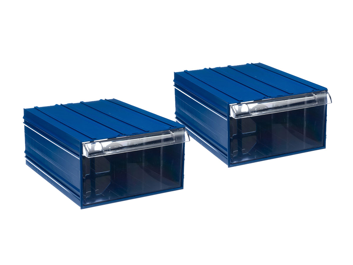 <p>Комплект коробов Стелла-техник С-510-2К, синий-прозрачный 2 шт, предназначен для хранения мелкоштучных изделий и комплектующих. Пластиковые короба С-510 с выдвижными ящиками изготовлены из полистирола. Габаритные размеры короба С-510 260х364х150мм. Длина самого короба составляет 340мм. + 24мм. выступ ручки короба. Полезные габариты внутреннего короба 330х245х135мм. Короб–синий, выдвижной ящик–прозрачный. Снаружи короб имеет специальные пазы, с помощью которых короба можно скреплять между собой. Благодаря этому, возможно конструирование коробов в модули разных размеров, в зависимости от планируемого месторасположения. Короба контейнеров для складского хранения С-510 имеют рельефную структуру днища и усиленные толстые стенки. За счет этого, изделия справляются с достаточно высокими эксплуатационными нагрузками. Короб может оснащаться поперечными перегородками (в комплект не входят и поставляются отдельно) Артикул перегородки: С-510-поперечная. Температурный режим эксплуатации от -10 до +70С.</p>